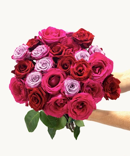 Pops of pink come to life with our Fuchsia Fusion bouquet! This multi-tonal display of 24 Ecuadorian pink, purple, red, and bicolor roses is anything but simplistic! Wow your special someone with these farm-fresh roses delivered straight to their doorstep for a gift they’ll never forget!