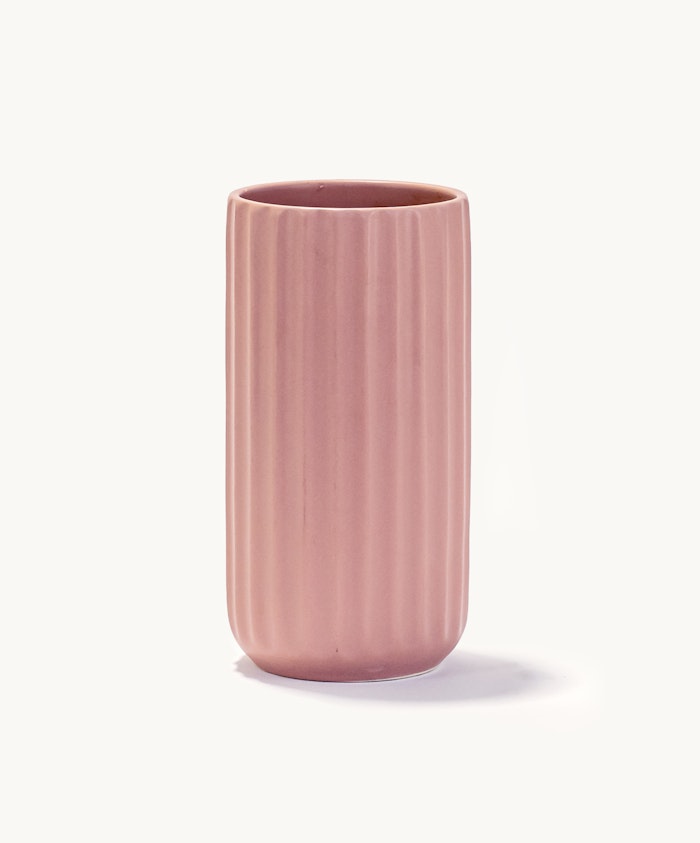 Add a fresh, springtime touch to your blooms. This charming pink ribbed ceramic vase brings texture and warmth to any arrangement, making it the perfect complement to your favorite florals.