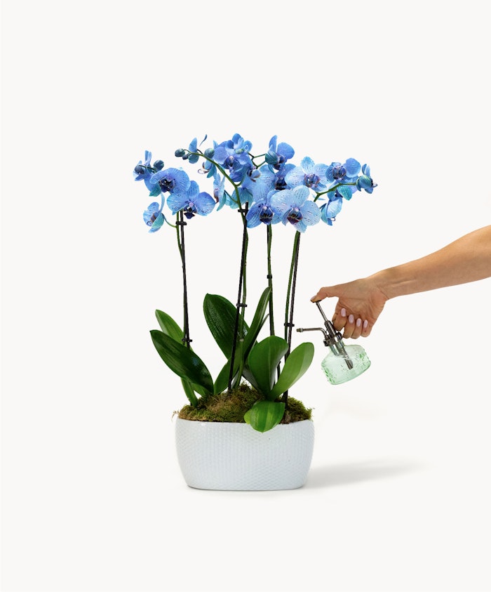 Just like our premium orchids, they grow to be 16-30” tall and needs just three ice cubes or 1/4 cup of water each week.